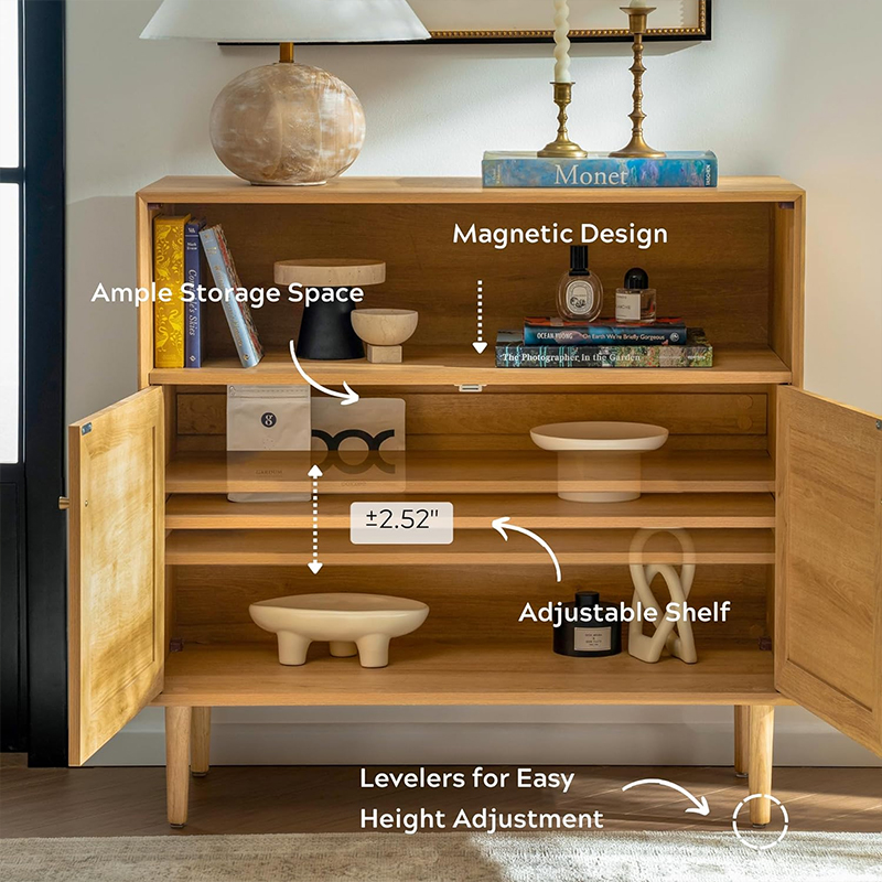 결론적으로, 라탄 도어가 달린 소박한 2도어 수납 캐비닛(Y-C43)은 집에 스타일리쉬하고 실용적인 수납 솔루션을 찾는 모든 사람에게 필수품입니다. 우아한 디자인, 내구성, 다용도성 덕분에 어떤 공간에도 잘 어울립니다. 그러니 오늘 이 아름다운 캐비닛으로 공간을 더욱 멋지게 꾸며보세요!
