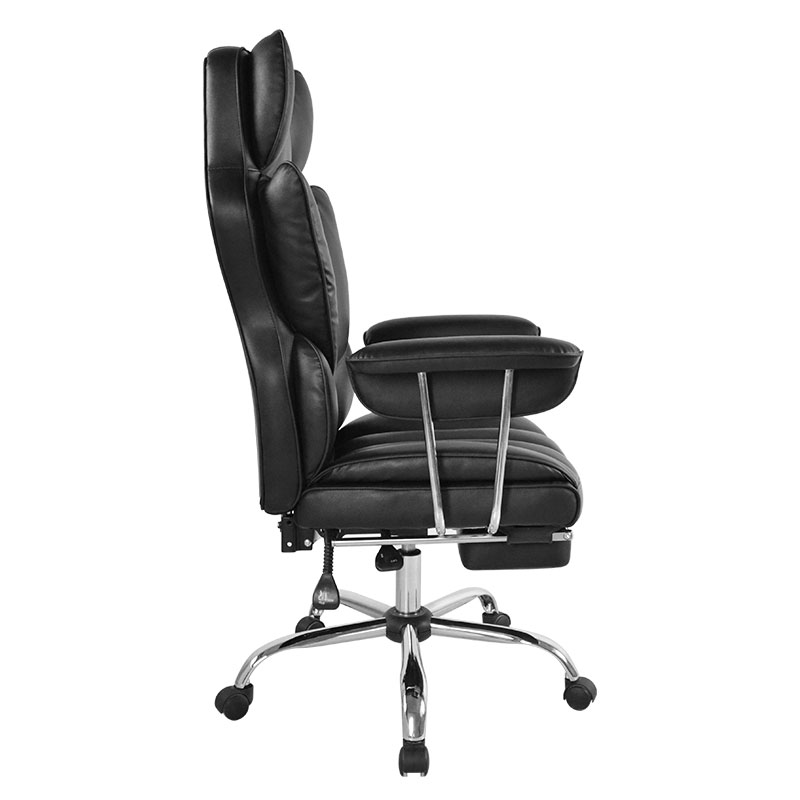 높은 등받이 인체공학적 검정색 가죽 바깥쪽으로 뒤집힌 패드 팔걸이 발판이 있는 보스 사무실 의자(M-6151)