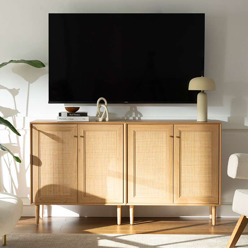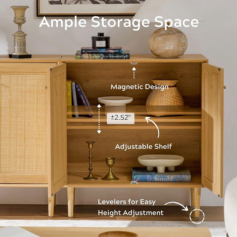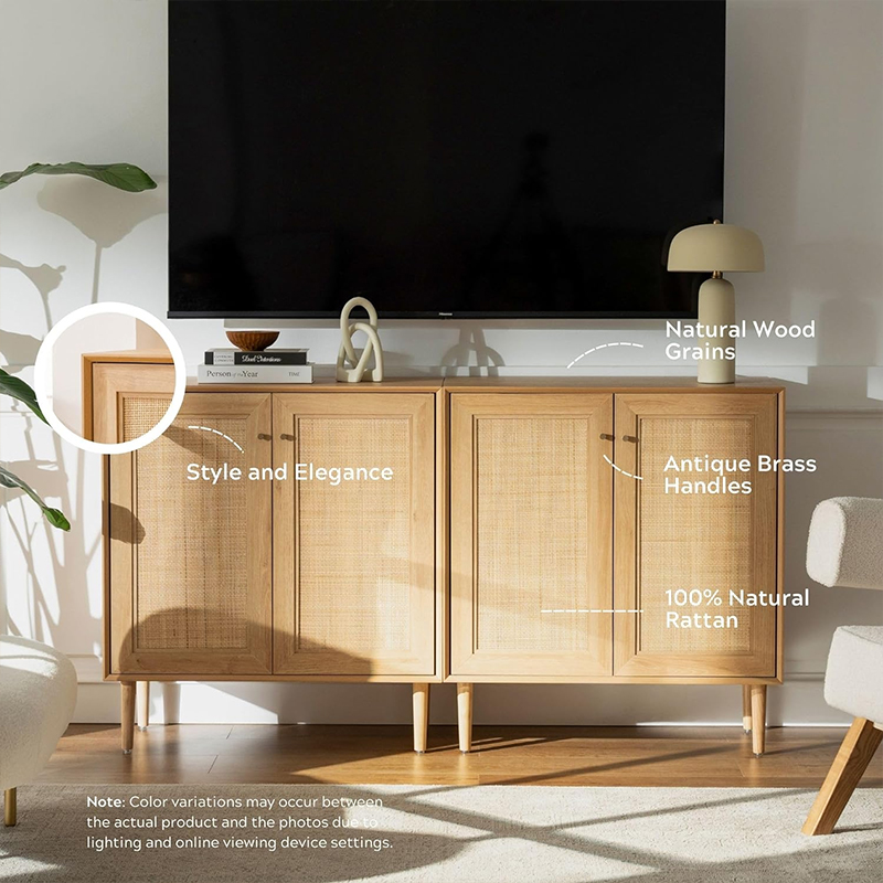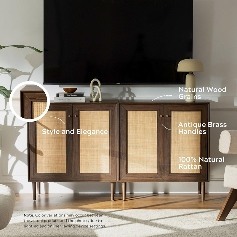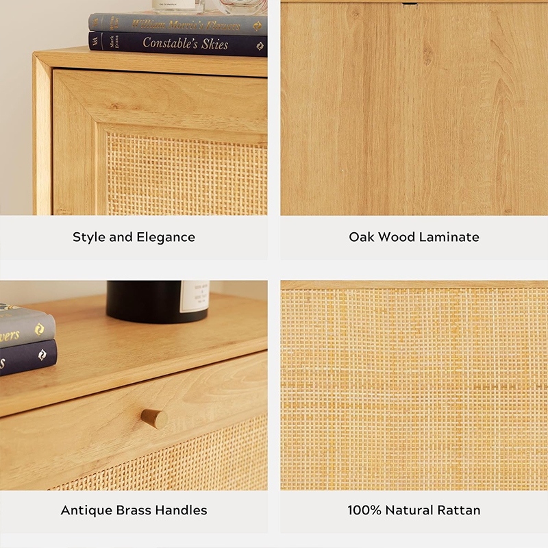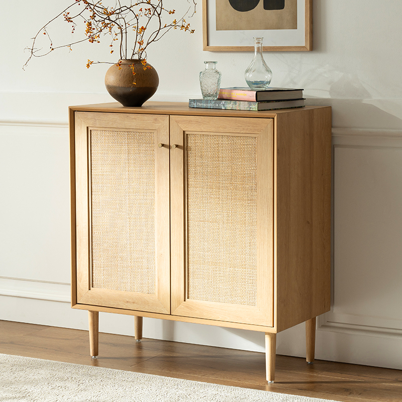 우드 컬러 빈티지 라탄 2도어 캐비닛(Y-C41)