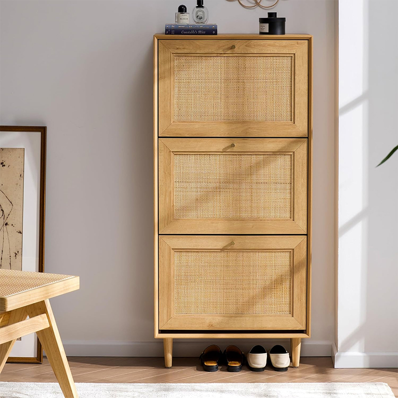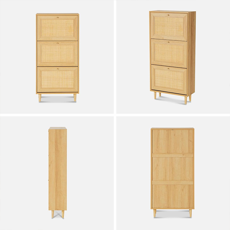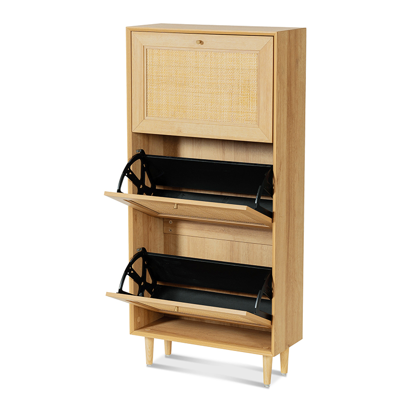 우드 컬러 3도어 등나무 신발장(Y-C39)