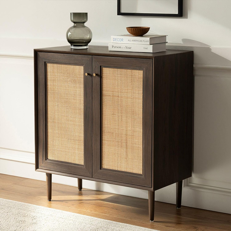 호두색 2도어 소박한 스타일의 목재 등나무 캐비닛(Y-C40)