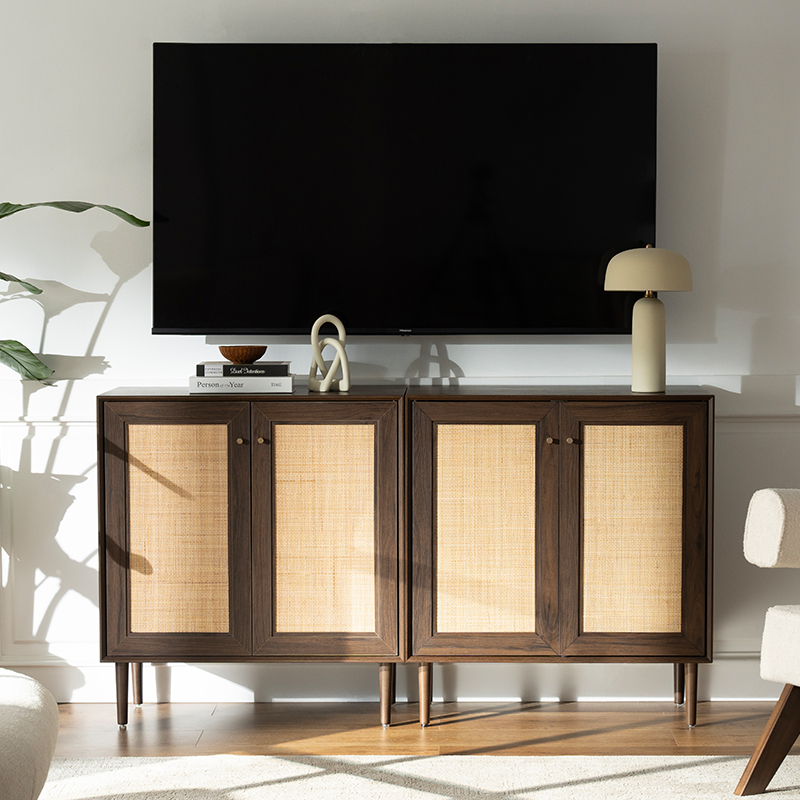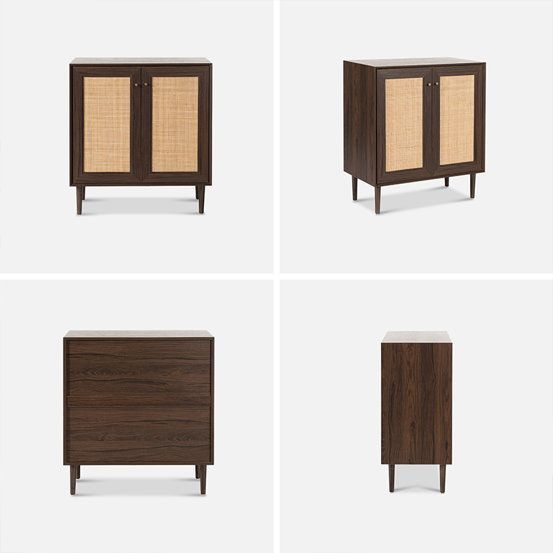 월넛 컬러 빈티지 라탄 투도어 수납장 (Y-C41)